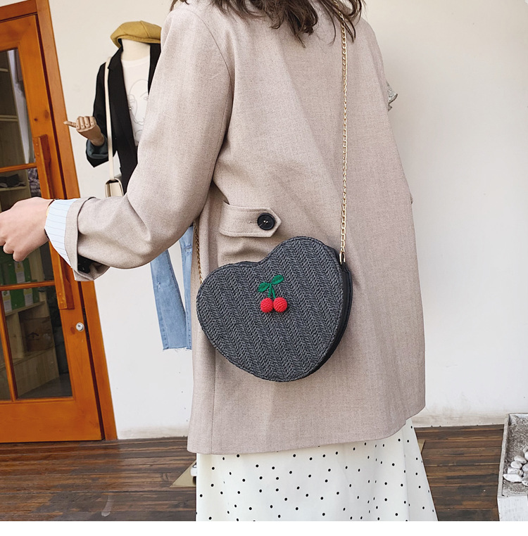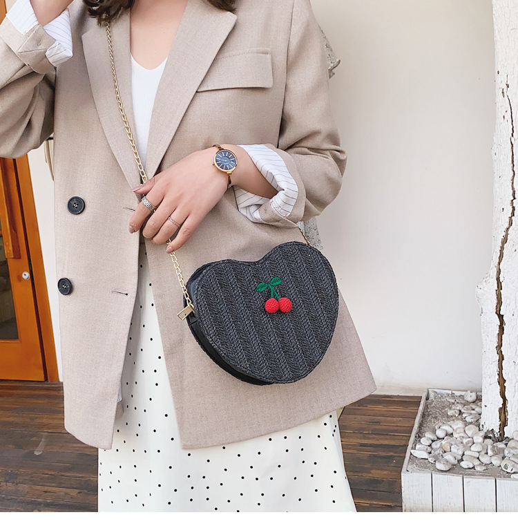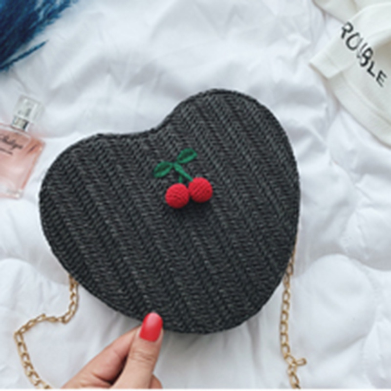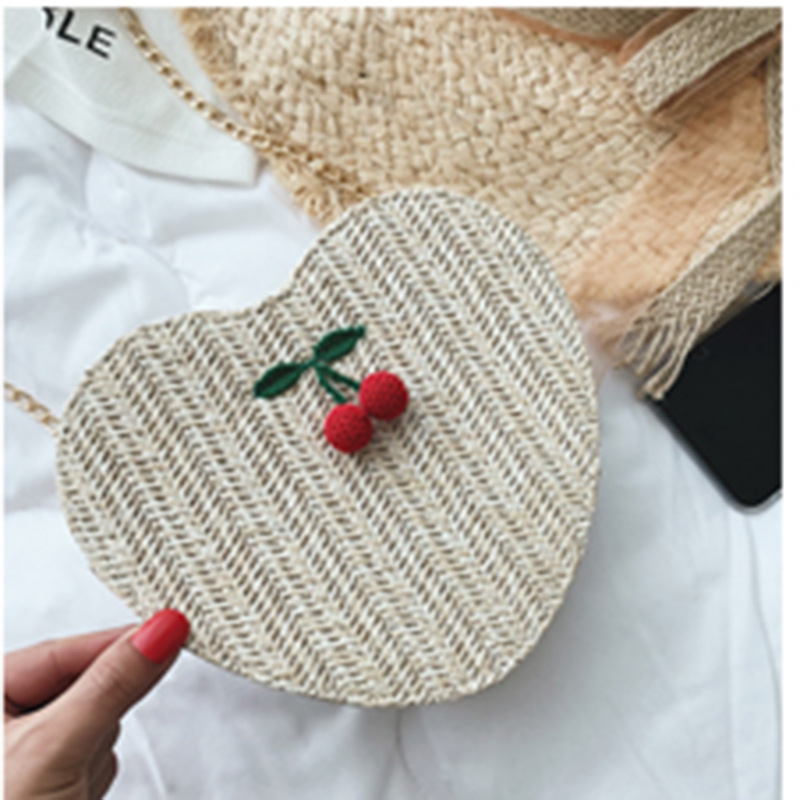 Straw heart-shaped shoulder bag messenger bag